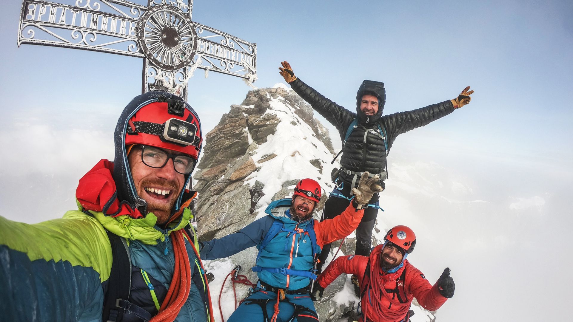 Ondřej (vlevo) a Jiří (vpravo) Švihálkovi se svými klienty na Matterhornu