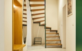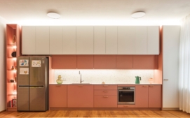 Více na CzechCrunch JobsArchitektka pak pro byt s vysokými stropy zvolila syté barvy, které přechází z pokoje do pokoje. Zároveň dodávají domovu na útulnosti. Středem prostoru dvoupatrového bytu prochází zelené schodiště s dřevěnými nášlapy, v obývacím pokoji jsou růžové závěsy, které volně navazují na bílo-růžovou kuchyňskou linku. Směrem k ložnici se pak prostor uklidňuje a převažují tlumené tóny, které ale doplňují výrazné designové detaily. Chodba prostor rozsvěcuje díky výrazně žluté malbě.