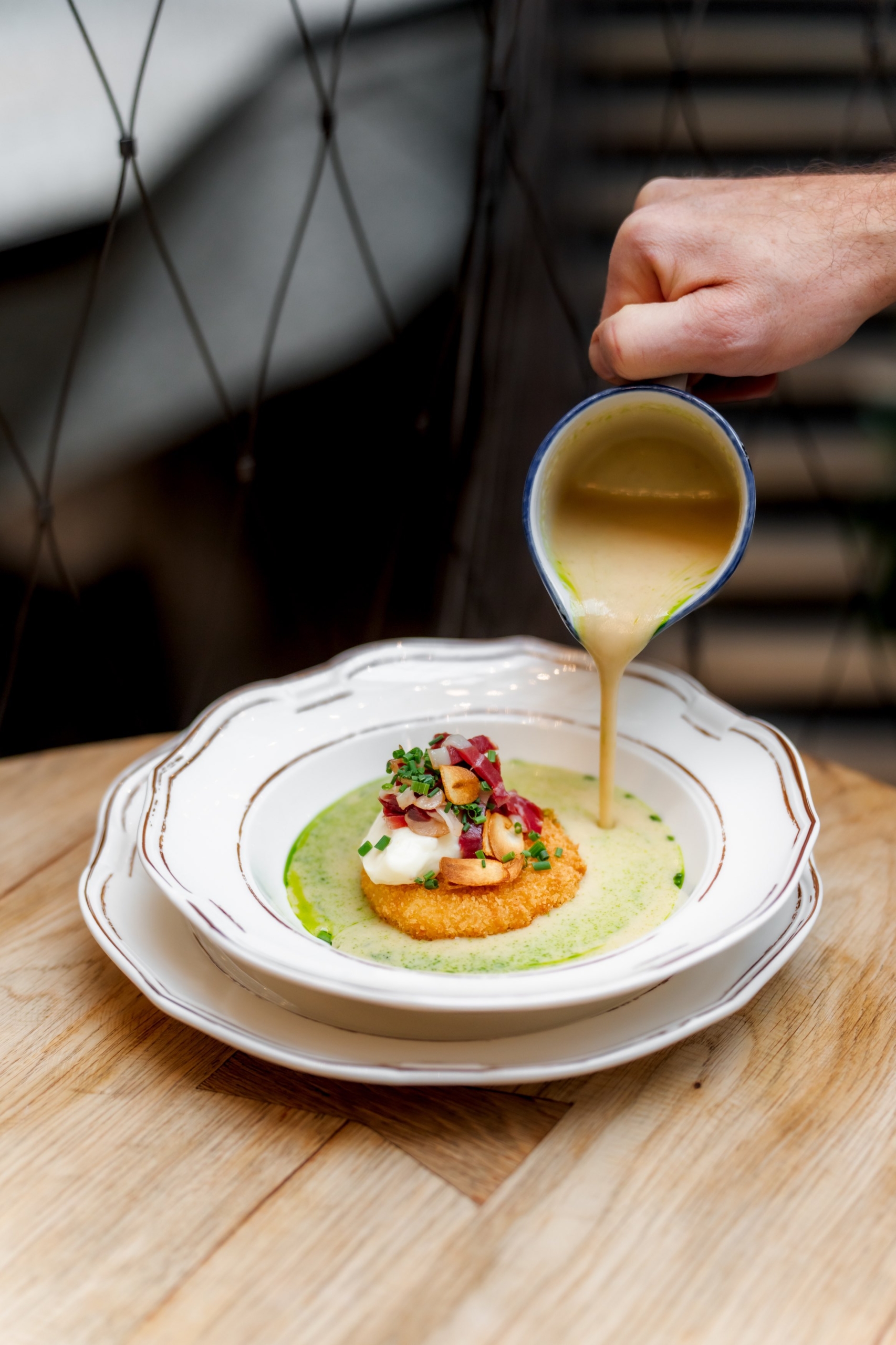 Česnečka s bramborovou kroketou