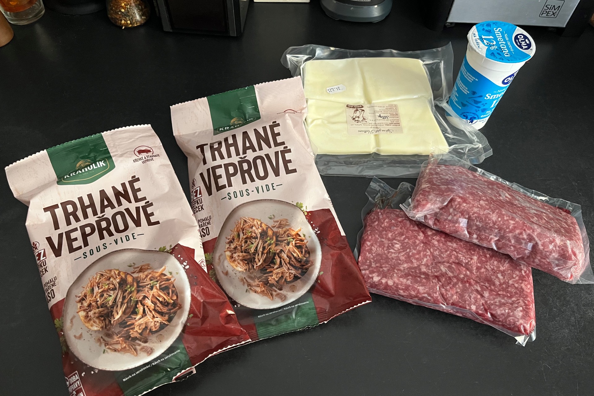 Čerstvé suroviny pro naše čtyři vybraná jídla pro čtyři osoby