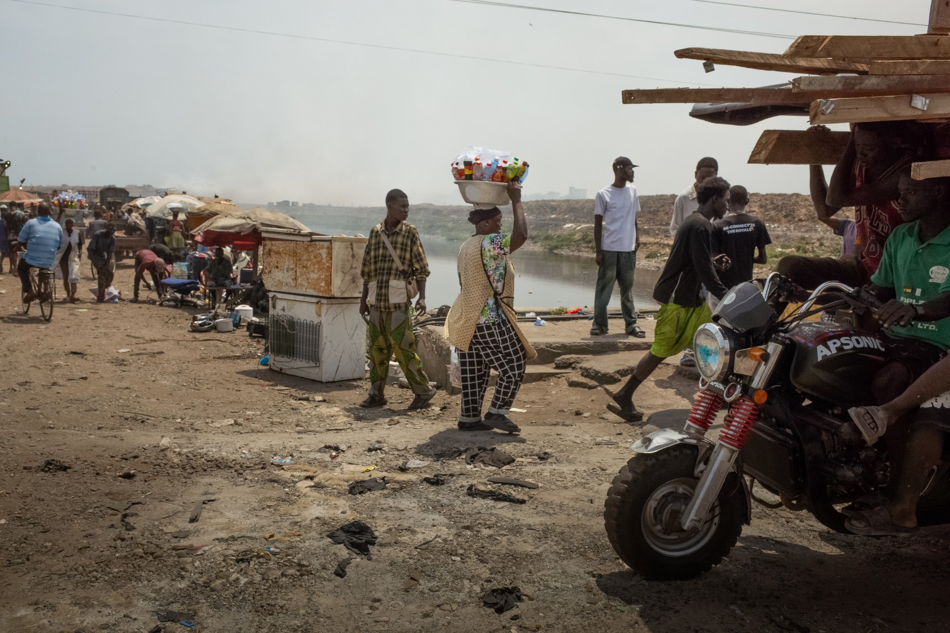Ženy zde na hlavách nosí nádoby s různými předměty na prodej, ať už jde o jídlo, nápoje nebo různé cetky