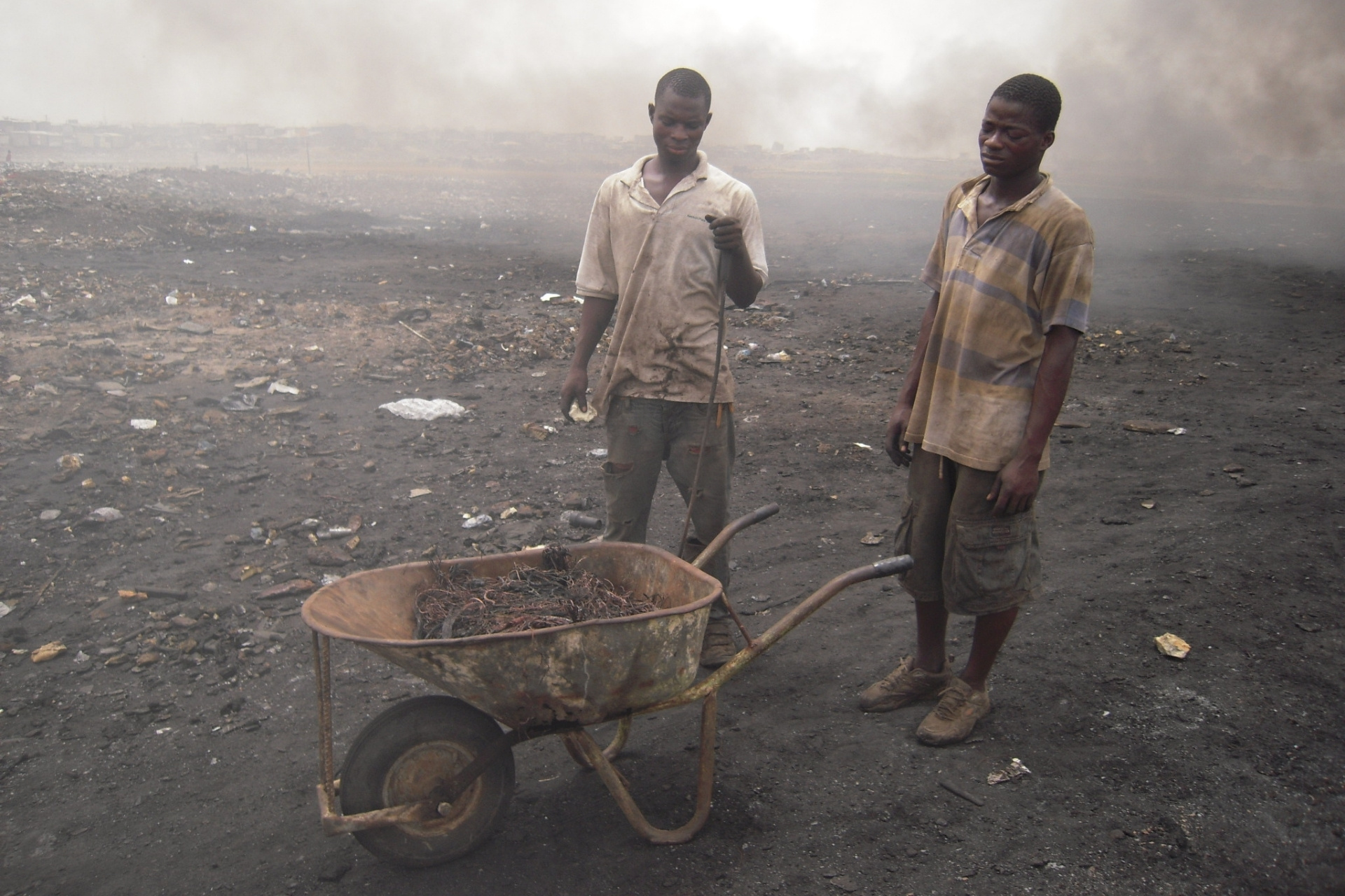 Takhle to ještě nedávno vypadalo na skládce Agbogbloshie, kde se ve velkém spaloval elektroodpad