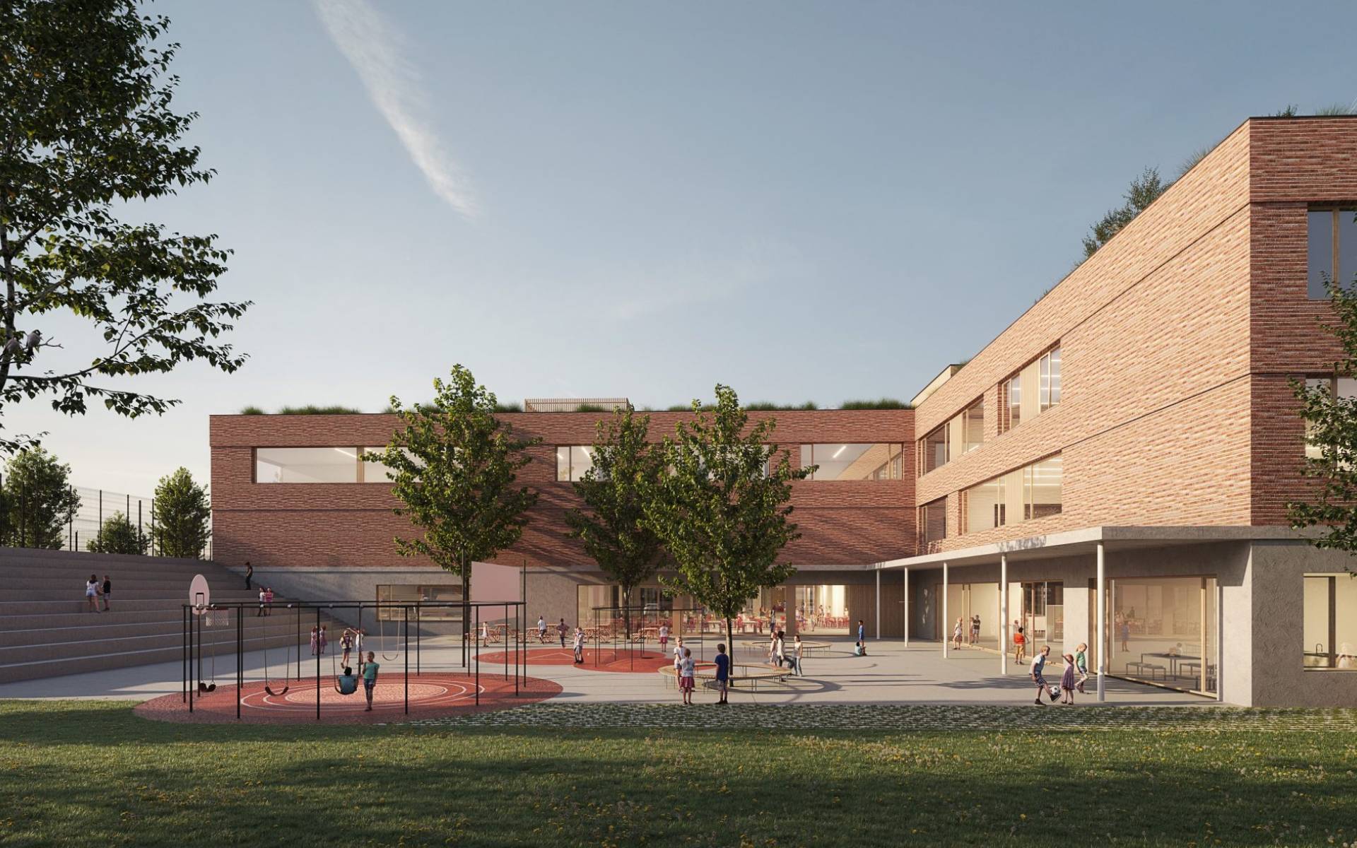 Dvě menší obce postavily školu za miliardu. Pod zemí má atletický tunel, třídy na střeše a výuku od 8:30
