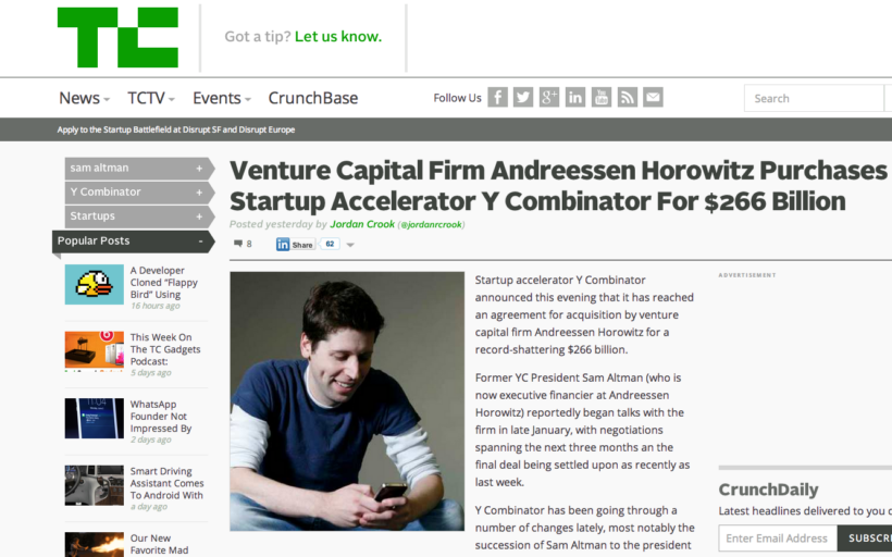Twitterem aktuálně hromadně probíhá zpráva o tom, že investiční gigant Andreessen Horowitz, který investoval do projektů jako Pinterest, Lyft, Oculus VR, Jawbone nebo Foursquare, kupuje jedničku na trhu startupových akcelerátorů v podobě kalifornského Y Combinatoru.