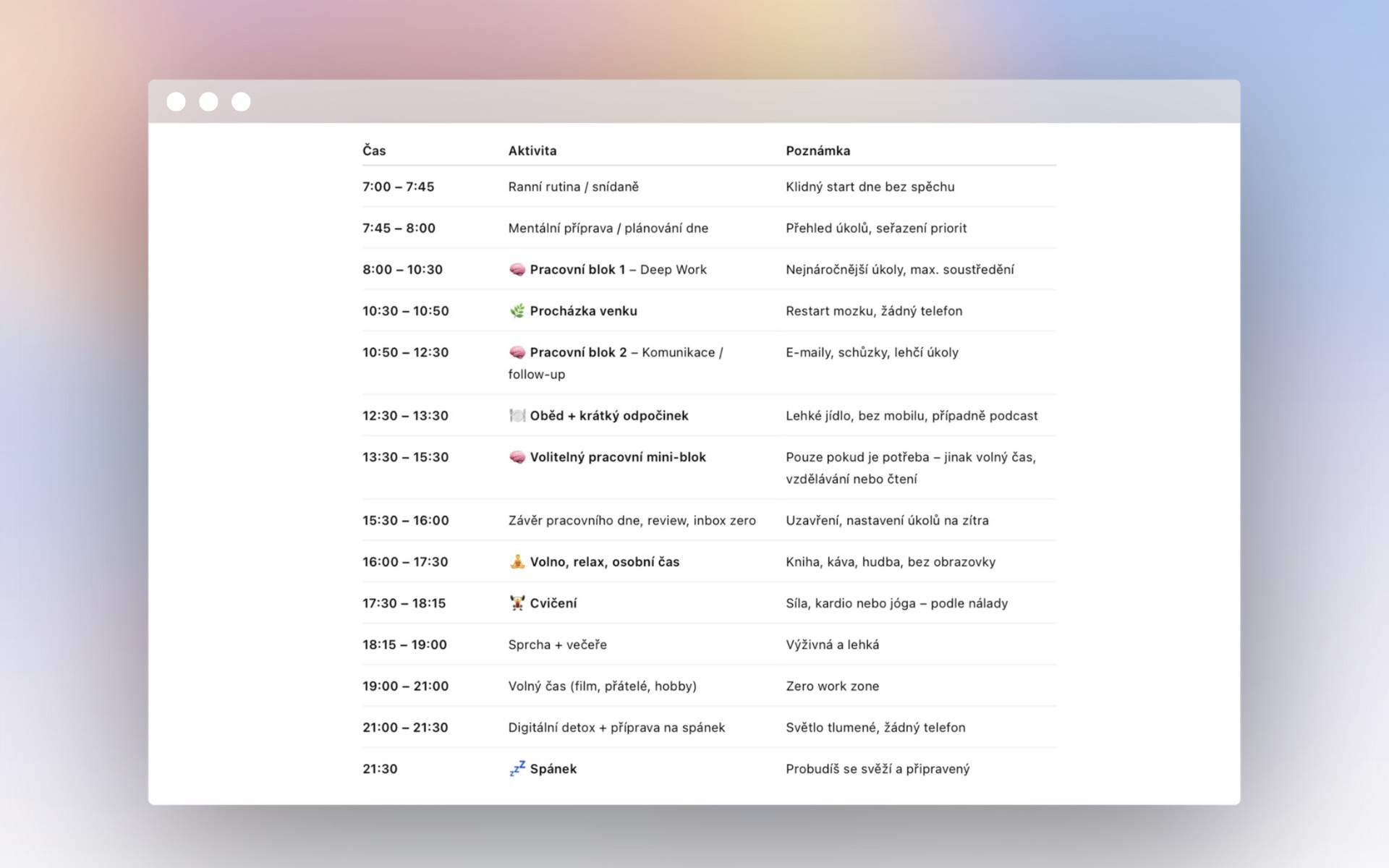 Denní program od verze GPT-5 podle Google Kalendáře