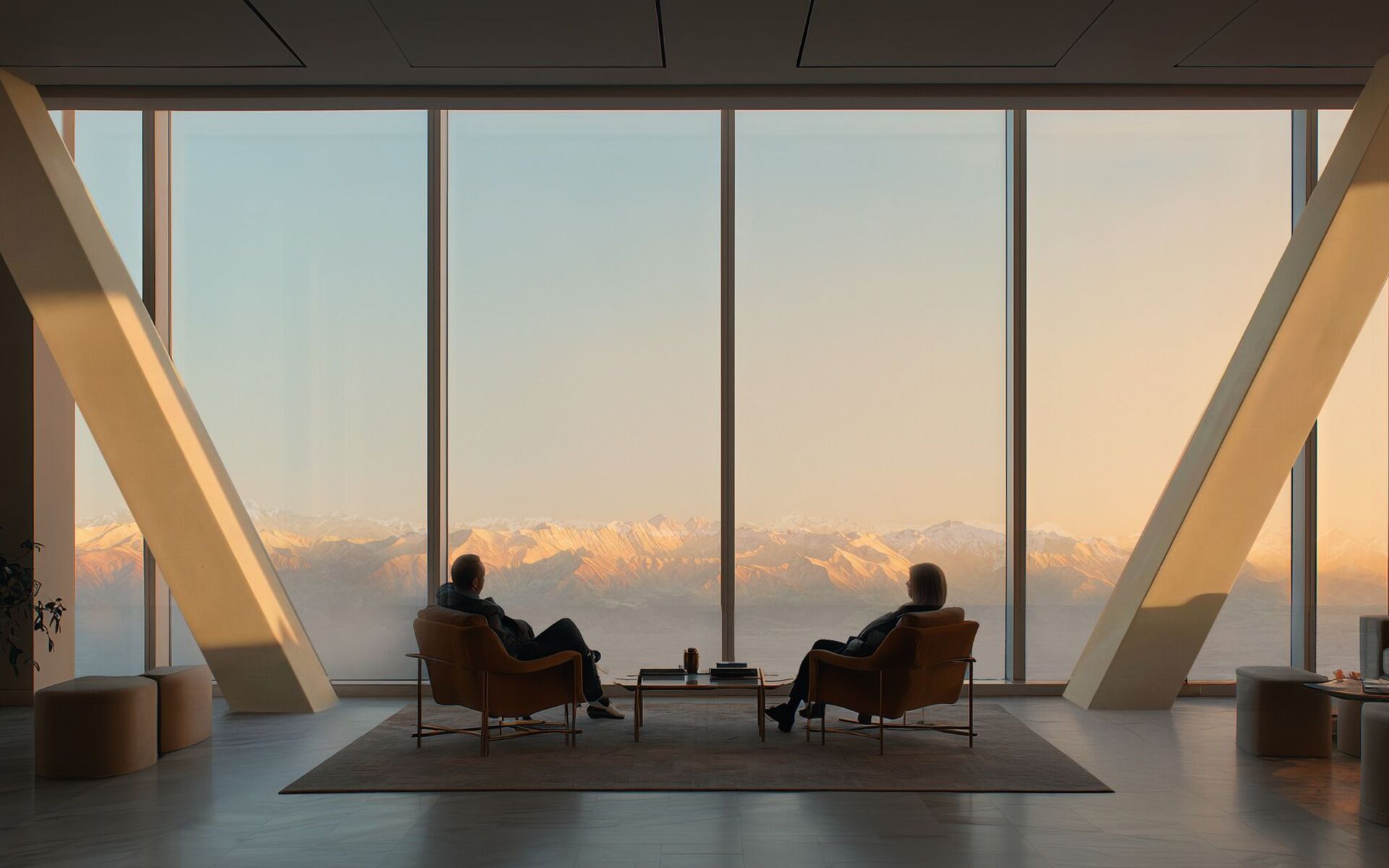 Výhled z nejvyšších pater Iconic Towers na pohoří