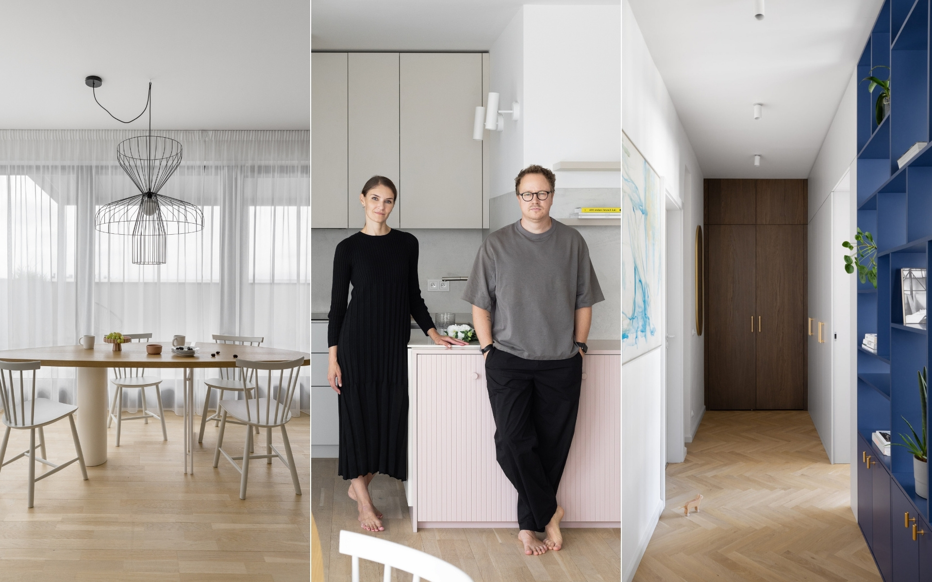 Interiéry bytů ve Stodůlkách a na Bubenči, uprostřed architekti Lenka Topinková a Martin Zima z Ateliéru Důmysl