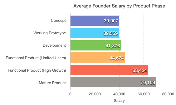 Data, která vznikla na základě 11 160 sledovaných startupů využívajících platformu Compass například říkají že: 75% zakladatelů ze Silicon Valley, si vyplácí méně než 75 000 dolarů/rok. 66% pak méně než 50 000 dolarů/rok. Průměrný roční plat zakladatele startupu v Indii je naopak 30,208 dolarů, v Austrálii pak 72,363 dolarů.