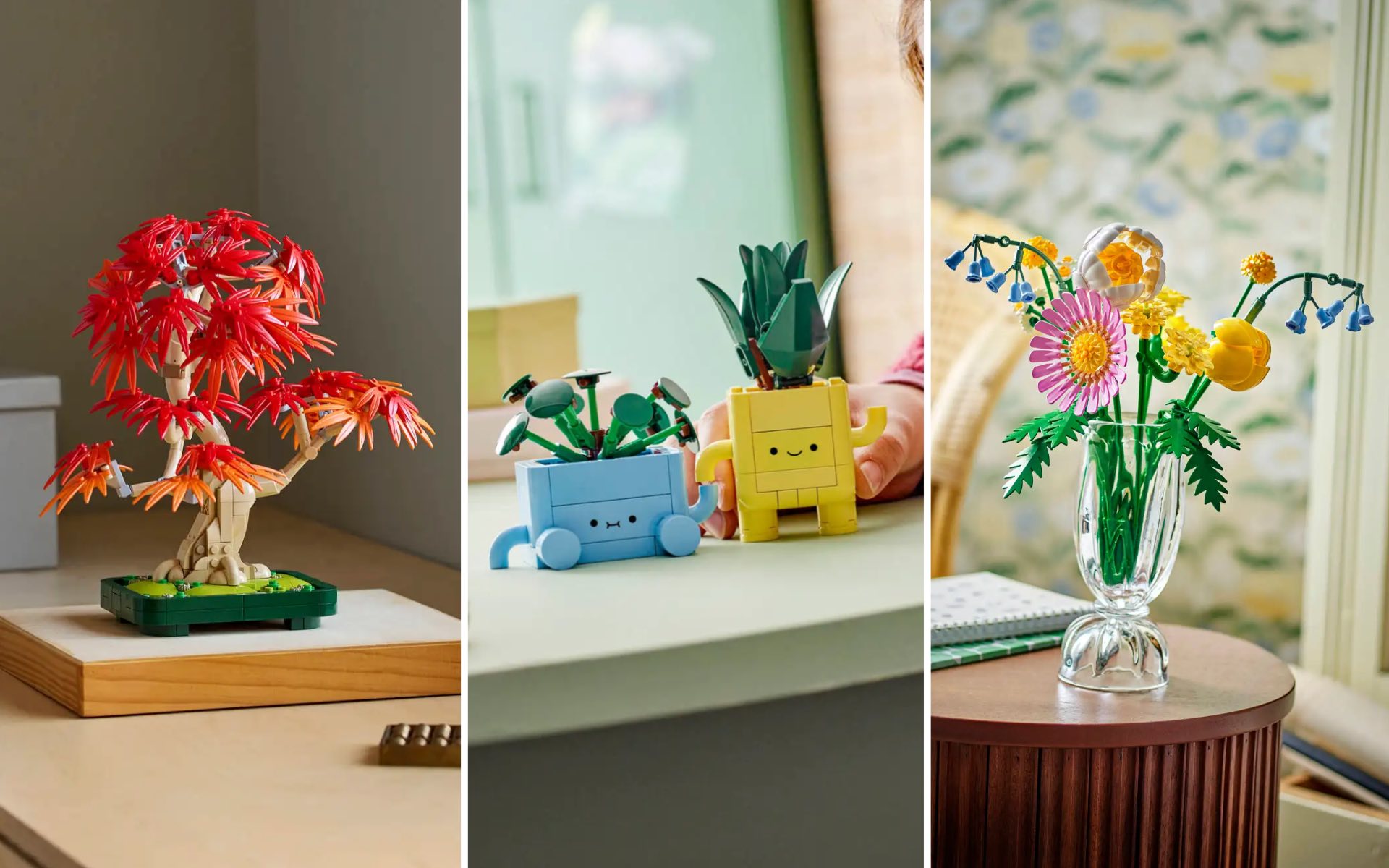 Kostičkové květinářství dál roste jako z vody. LEGO ukázalo nové kytice, bonsaj i veselé rostlinky