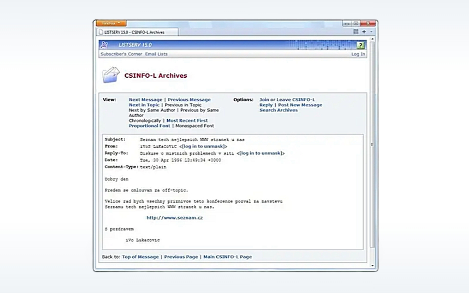 Nejlepší WWW stránky u nás… Tohle je e-mail, kterým Ivo Lukačovič ohlásil vznik Seznamu