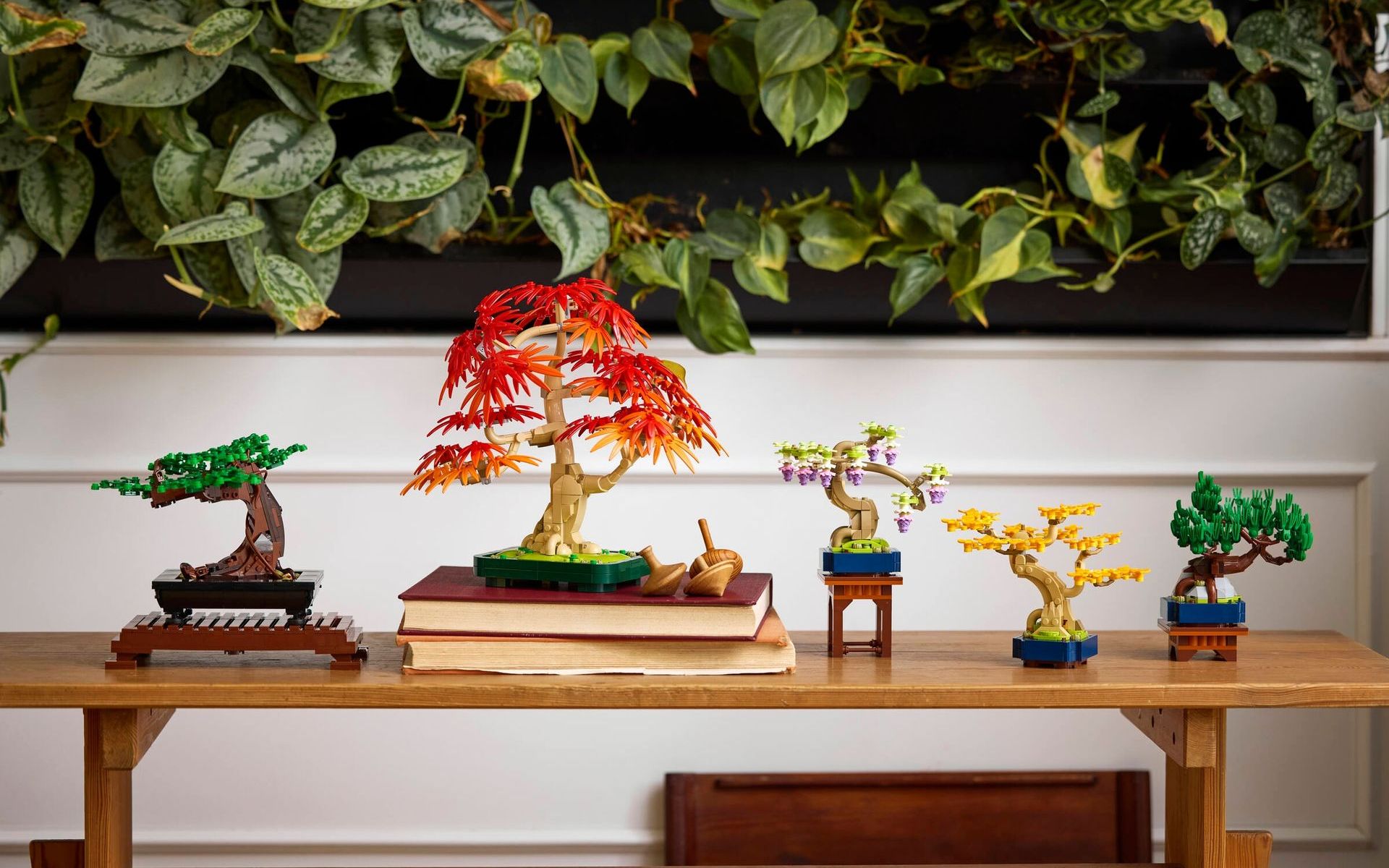 Vlevo starší LEGO bonsaje, vpravo tři mininovinky