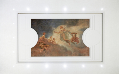 Další prvky dechberoucího obchodu Apple Via del Corso, které dalece přesahující funkci i luxusní prodejny, jsou k nalezení ve druhém patře. Tam se dostaneme po velkolepém mramorovém schodišti z konce 19. století, jež je obklopené krásně zdobenými stěnami a stropy.