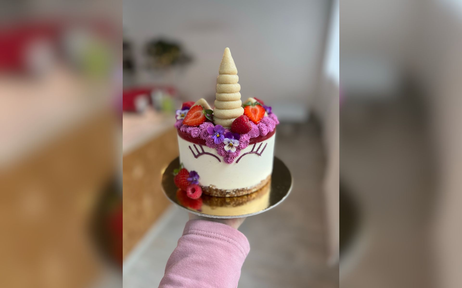 Narozeninový dort připomínající mýtického jednorožce