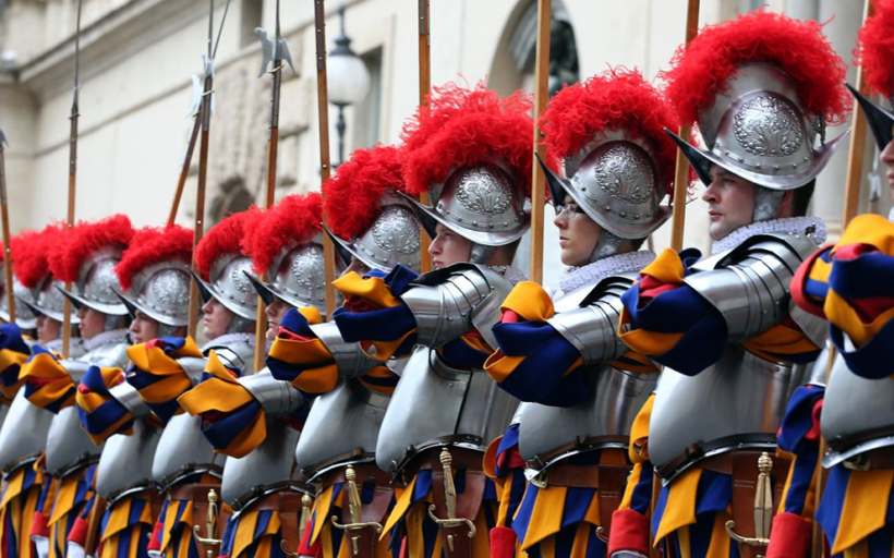 Už přes 500 let chrání papežská švýcarská garda hlavu katolické církve, papeže. Kromě poměrně velkého výčtu přísných pravidel, které osobní strážci musí dodržovat, jsou členové švýcarské gardy, jejichž počet v současnosti čítá zhruba 120 členů, příznační i pro svoji uniformu. Gardisté chodí v nápadných barevných uniformách renesančního původu a ikonická je rovněž jejich černá ocelová přilba, známá také pod názvem morion.