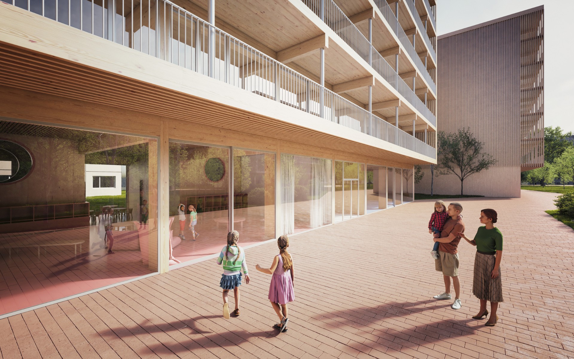 Dřevěné bytovky Evolo i se školkou