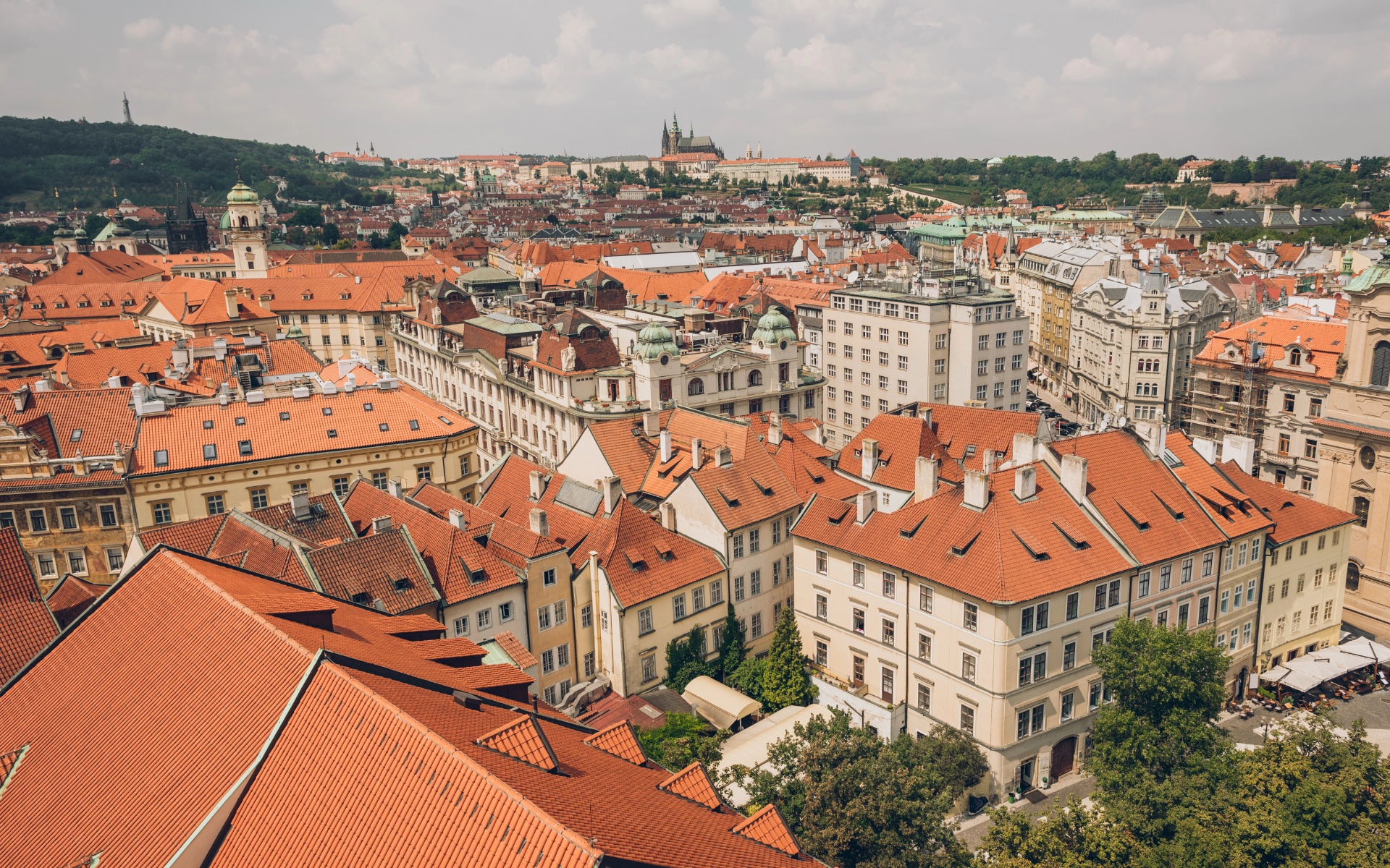 Pohled na Prahu s Pražským hradem v pozadí