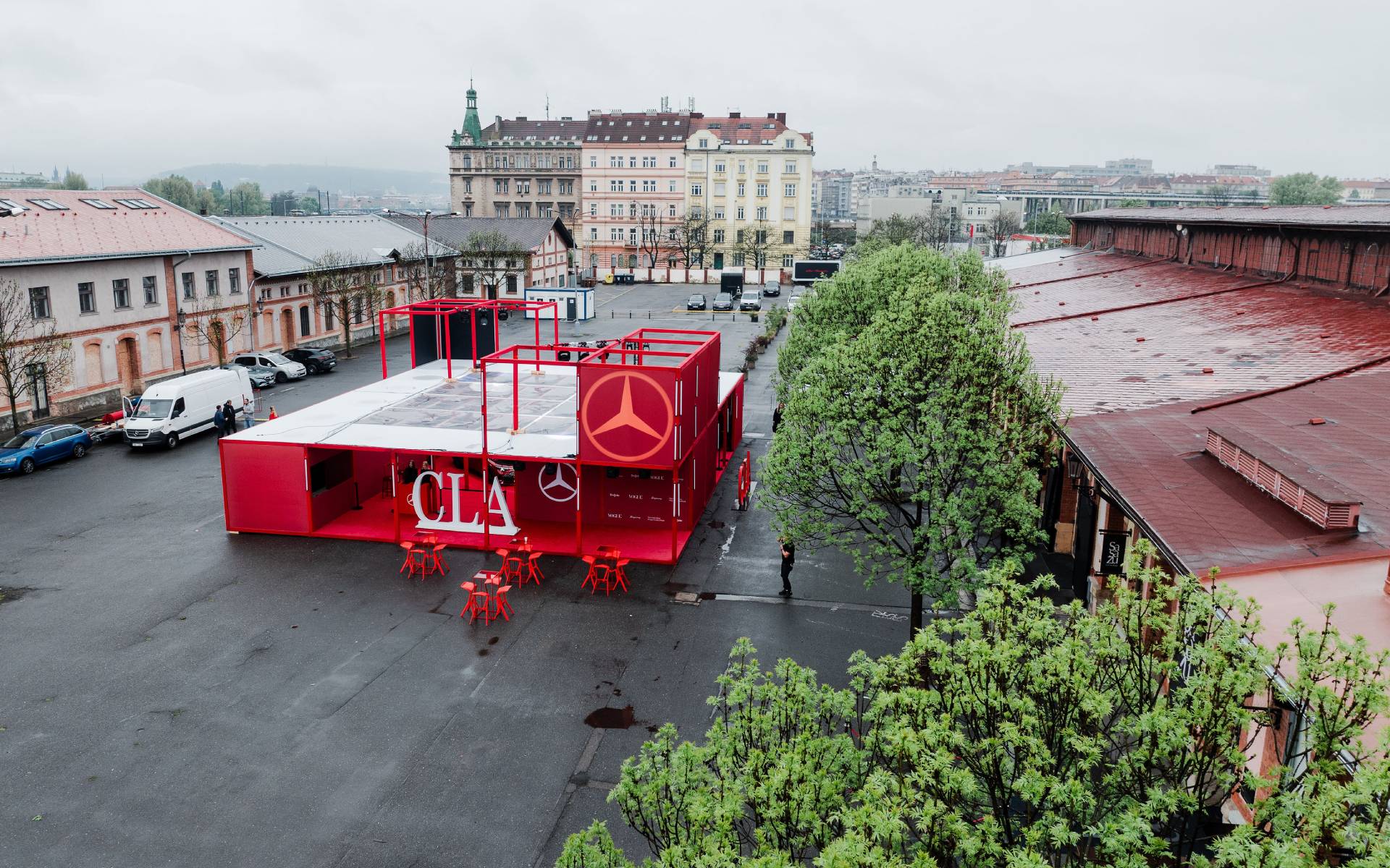 Stánek Mercedesu v holešovické tržnici