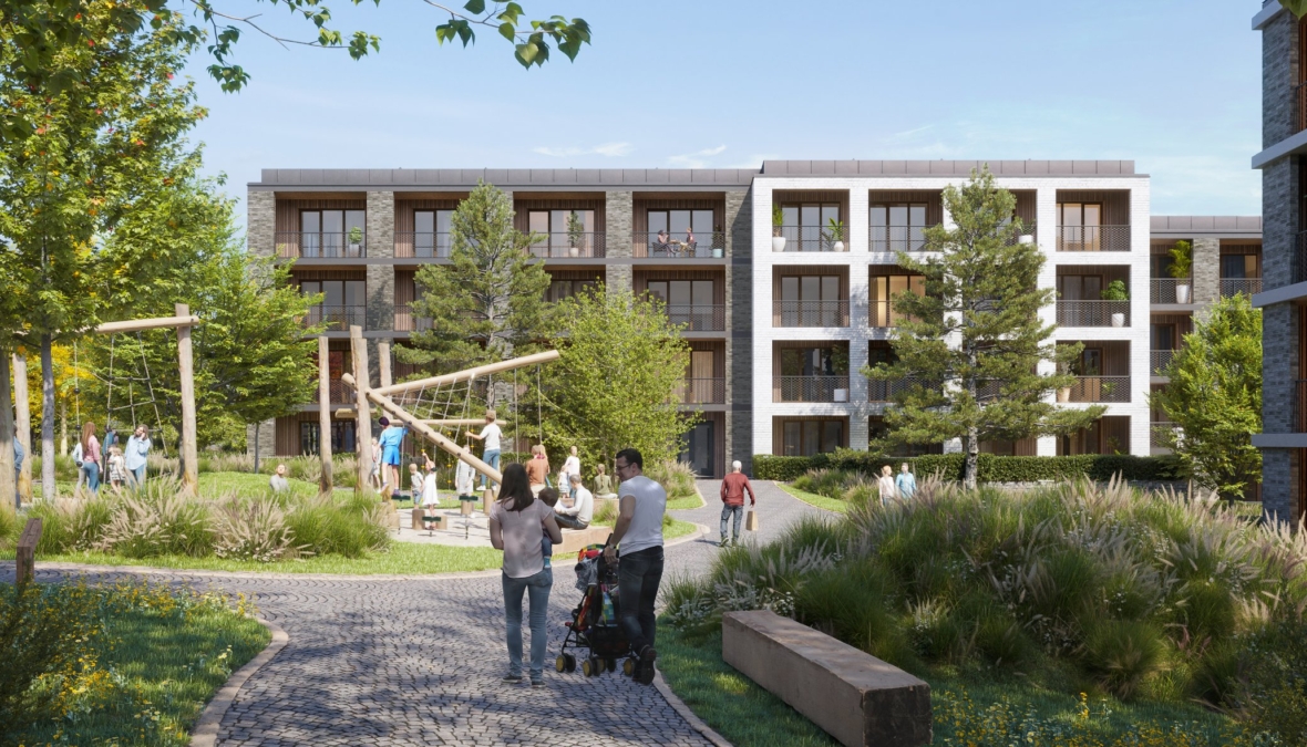 Skanska ve svém projektu počítá i se společnými prostory. Může tu vzniknout například dětská skupina na hlídání nebo koutek pro kutily. Ve vnitrobloku pak dětské prolézačky a lavičky k odpočinku.