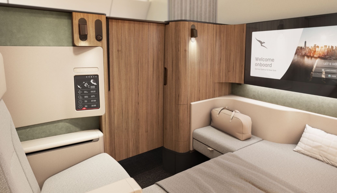 Stylový komfort na 19hodinovém letu. Nová první třída aerolinek Qantas je jako maličký obývák