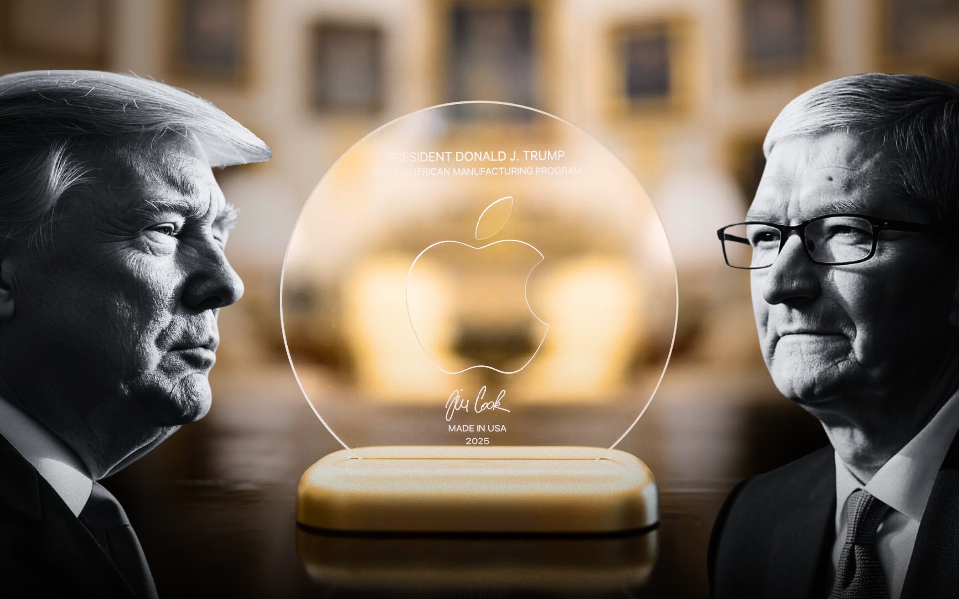 Donald Trump, Tim Cook a skleněná plaketa