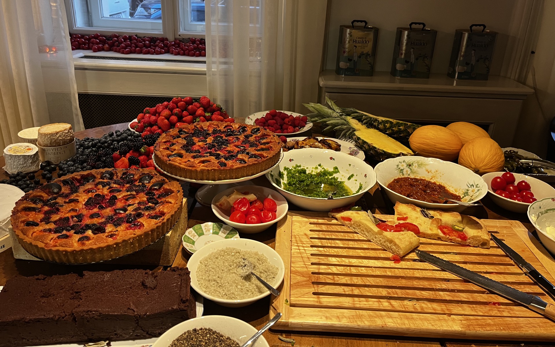 Zákusky jsou vystaveny mezi hosty