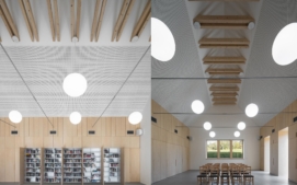 „Sál je navržen tak, aby sloužil nejen všem společenským aktivitám obce a soukromým akcím jejích obyvatel, ale díky truhlářské vestavbě také poskytoval zázemí místní knihovně a spolkům. Dům je tak maximálně využit v průběhu celého týdne, což současně napomáhá jeho úspornému provozu,“ dodávají architekti.