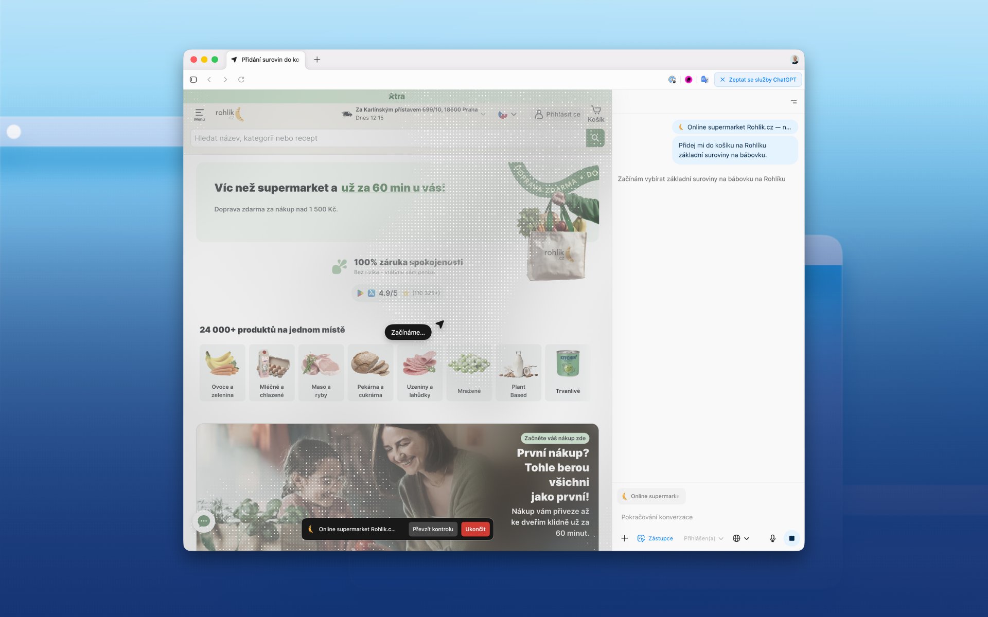 Proces nákupu na Rohlíku přes Režim Agenta
