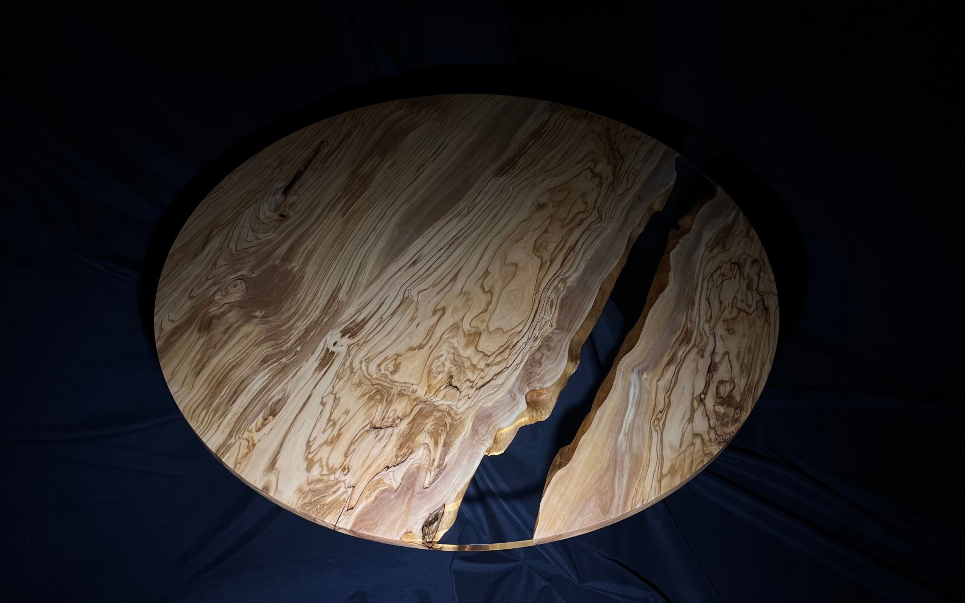 Umělecký stůl, jehož rýhu autor vyplnil epoxidovou pryskyřicí
