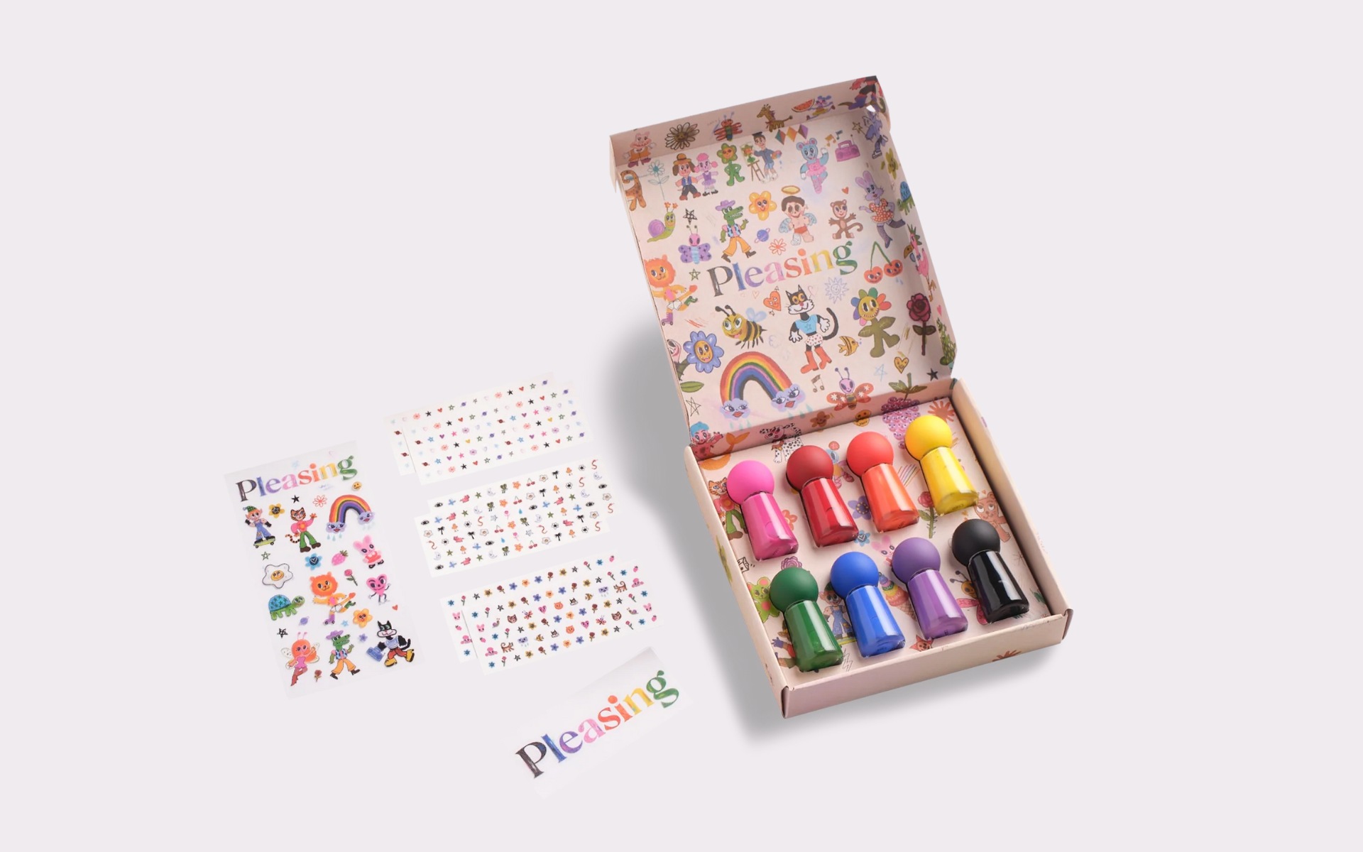 Laky na nehty včetně drobných samolepek