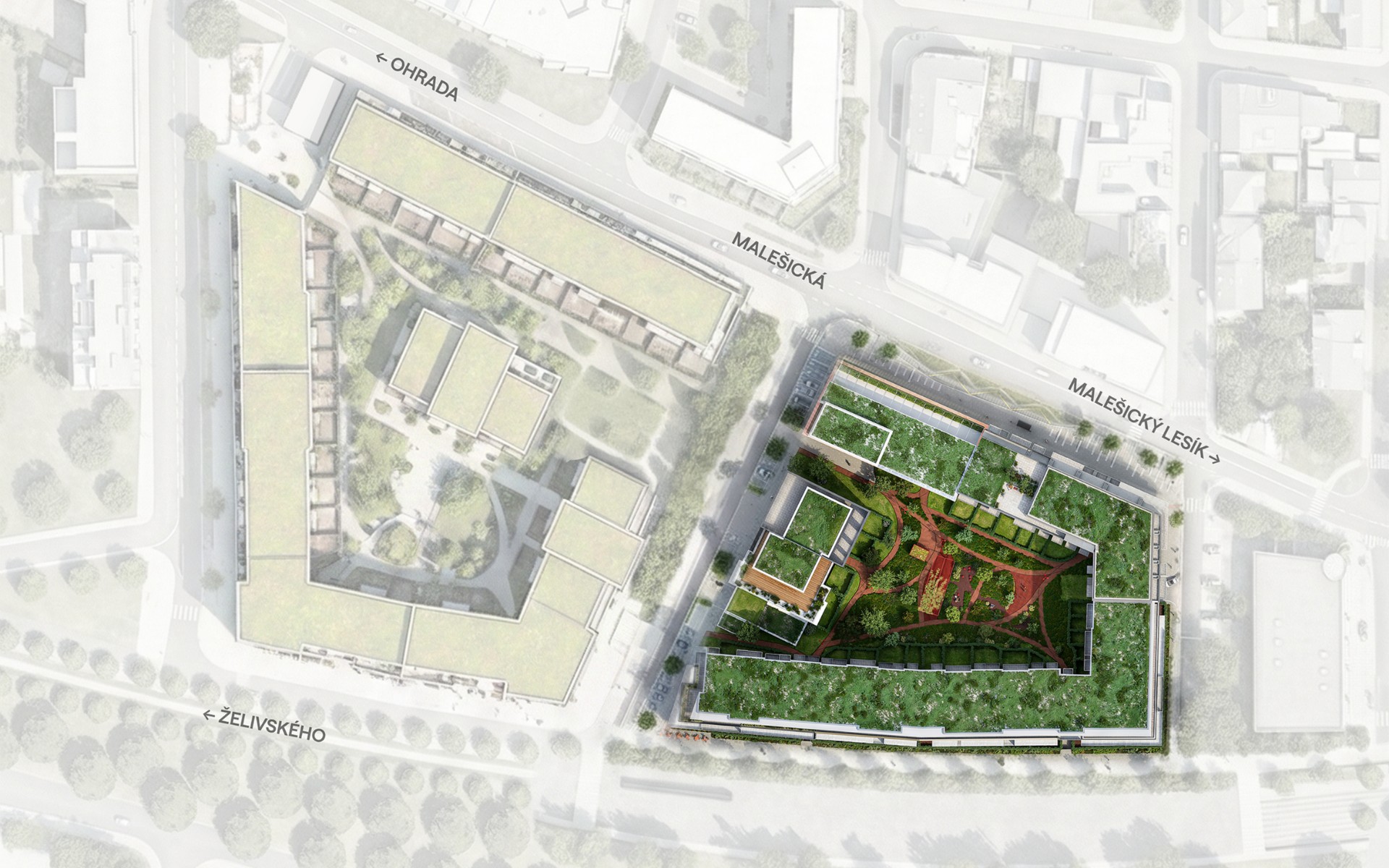 Umístění budoucího rezidenčního komplexu Yards Žižkov